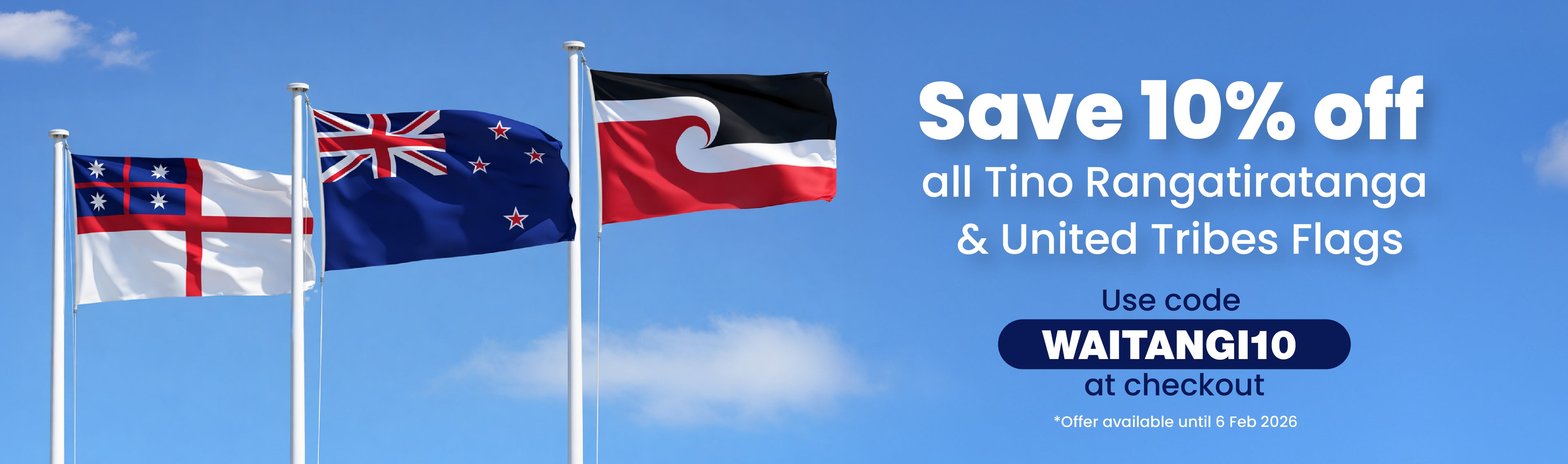 Save 10% off all Tino Rangatiratanga & United Tribes Flags