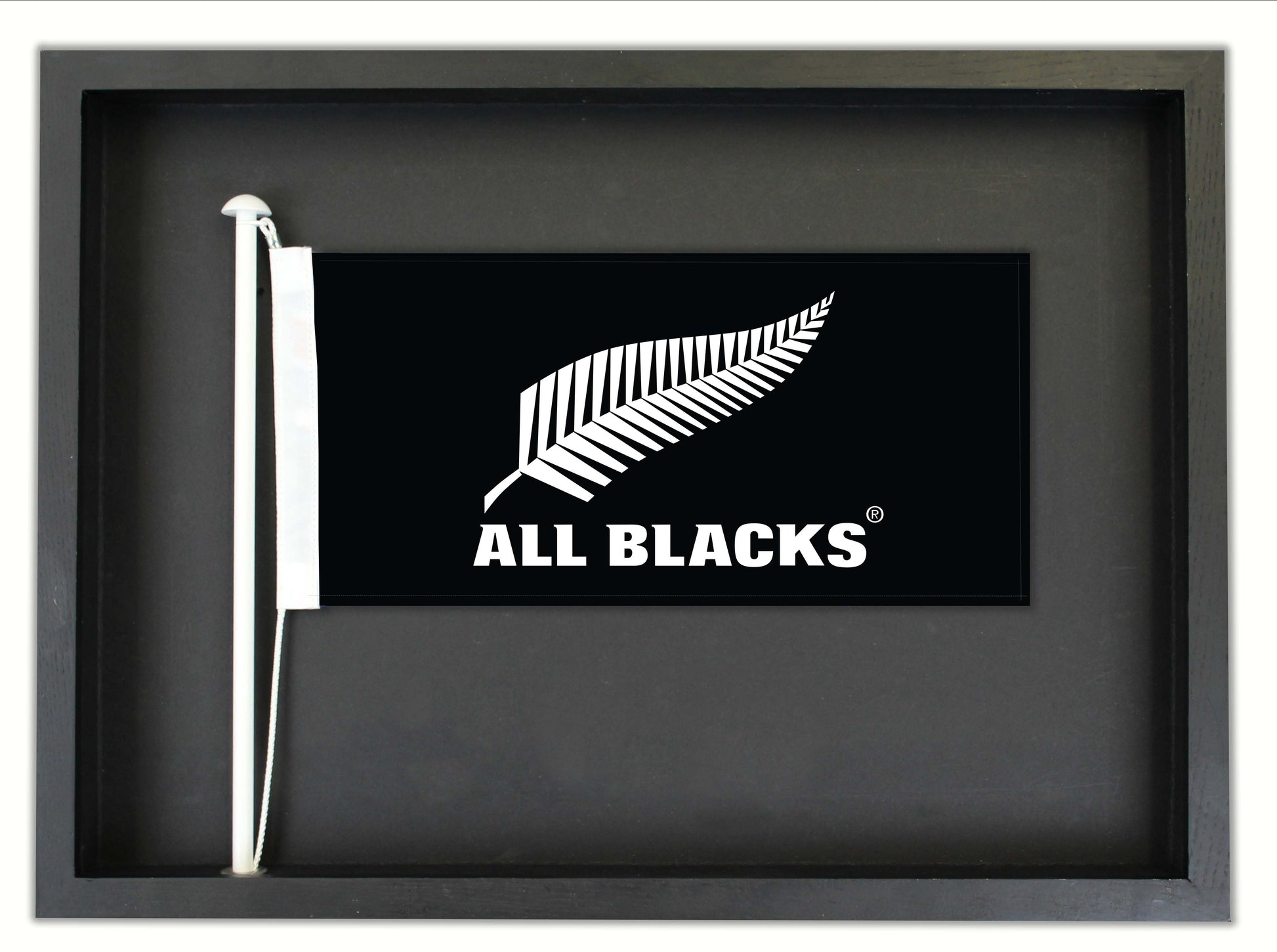 Authentic All Blacks® Flag in a Black Oak Frame Free shipping in NZ.