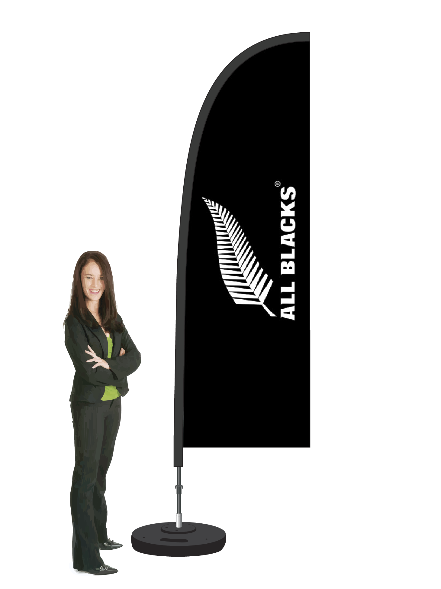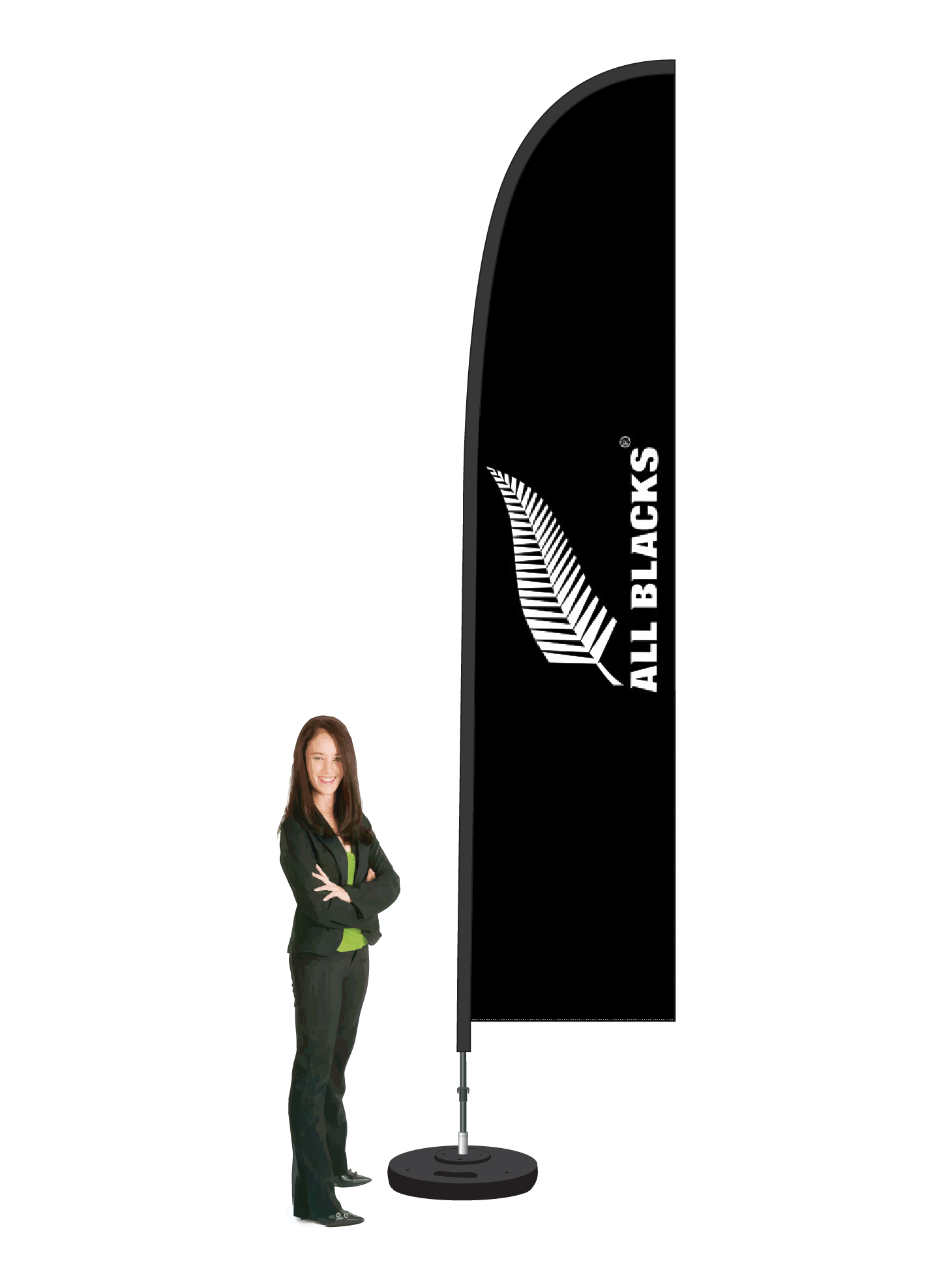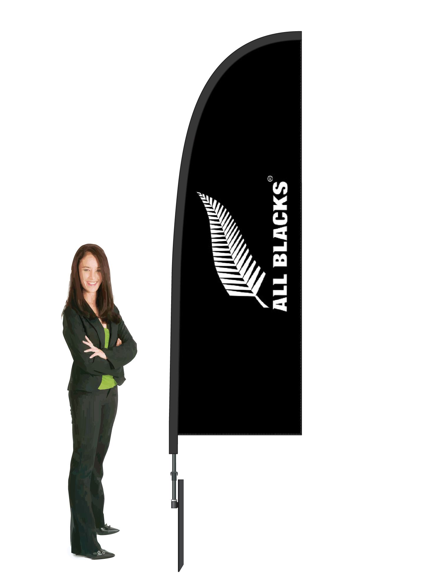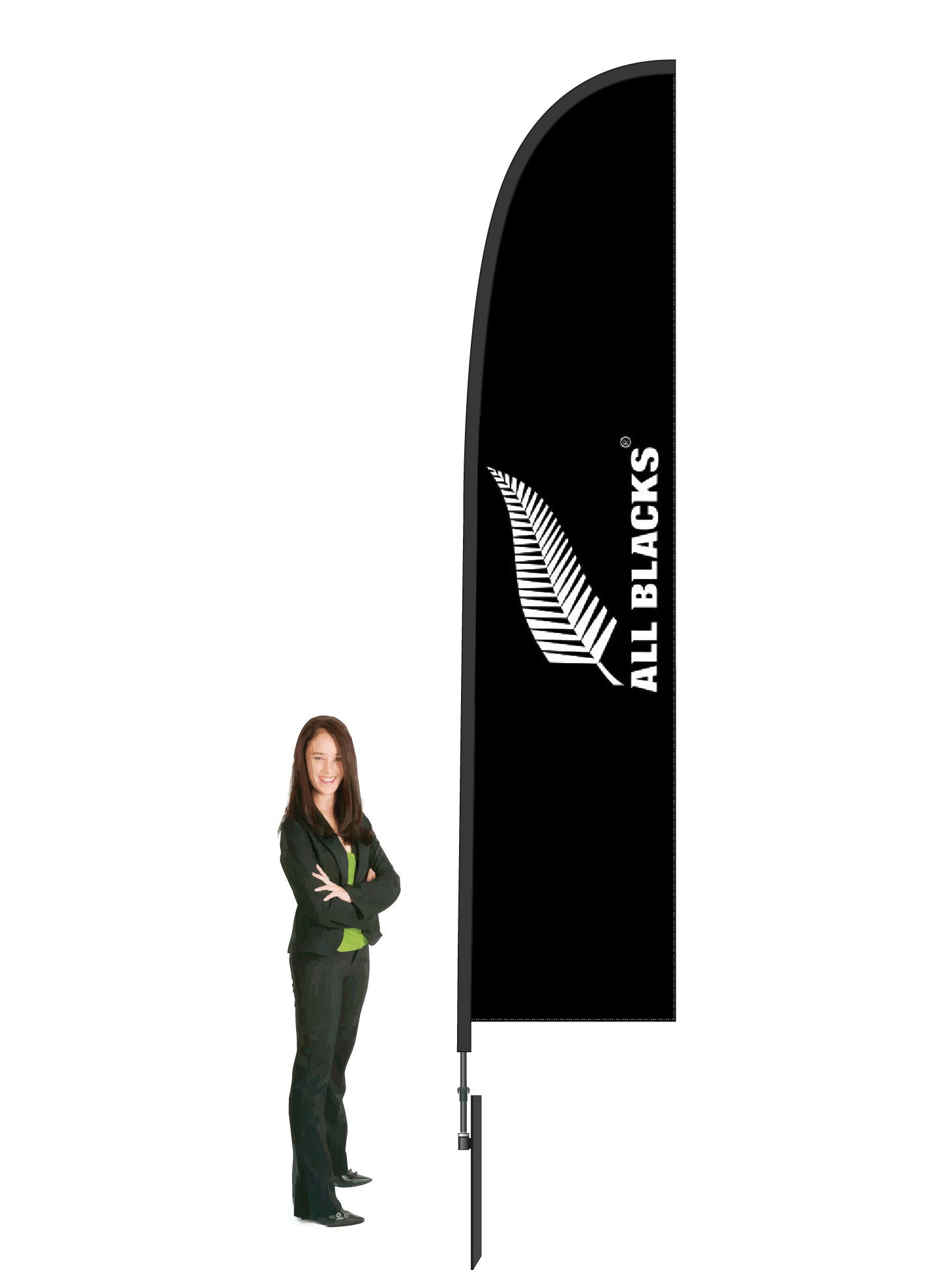 All Blacks Durapole Flex Portable Display - attractive curved wing/feather shape ideal for catching attention for your event or business.