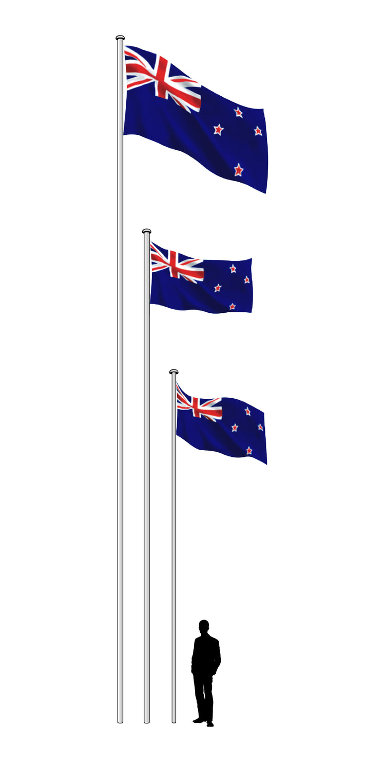 These poles are the most durable flag poles available powder-coated with high strength marine-grade 6061 Aluminum. They have been used widely for the last 30 years throughout NZ and designed to last for many years in NZ's harsh environment. All components are made in NZ to our strict standards.