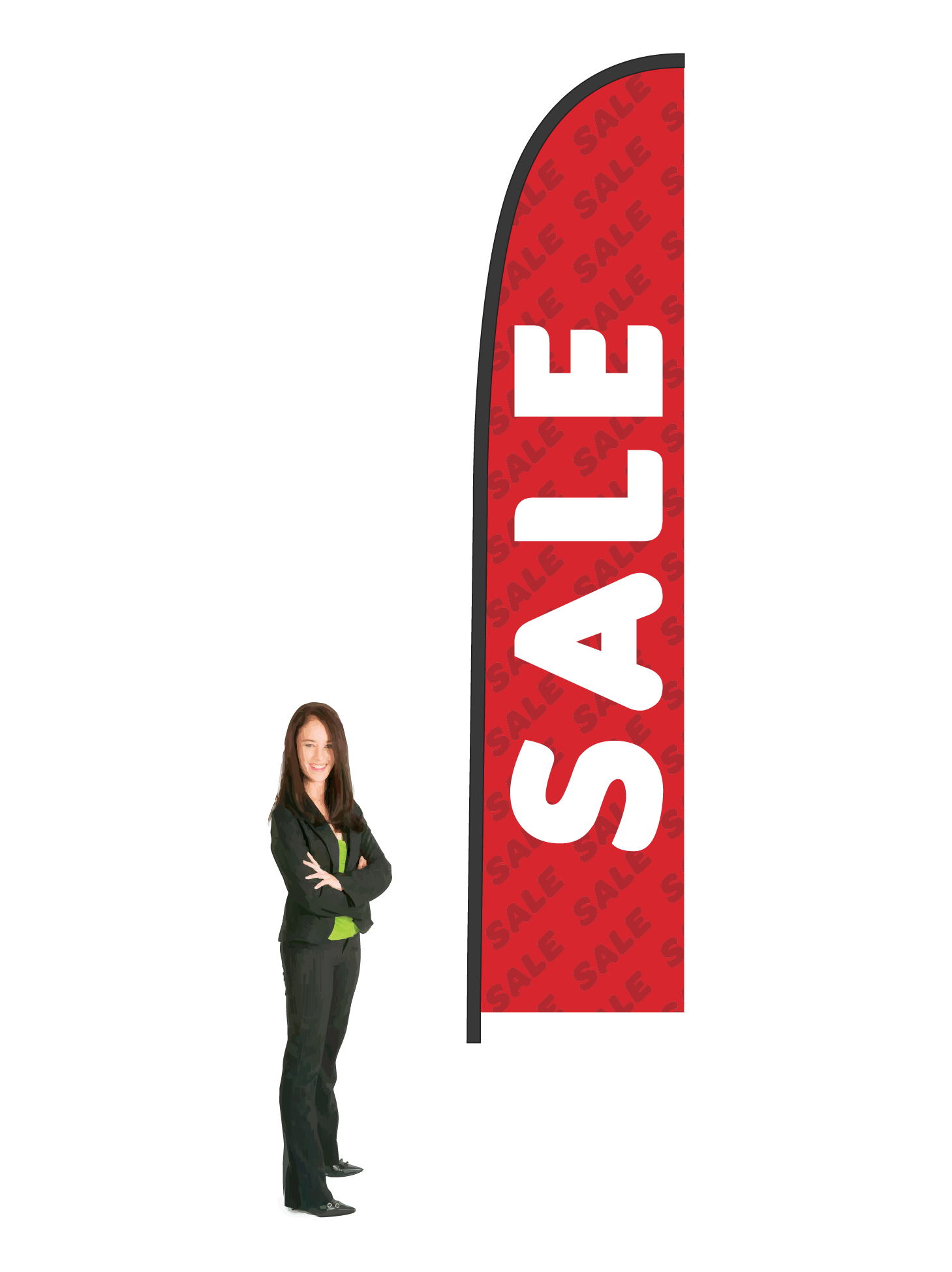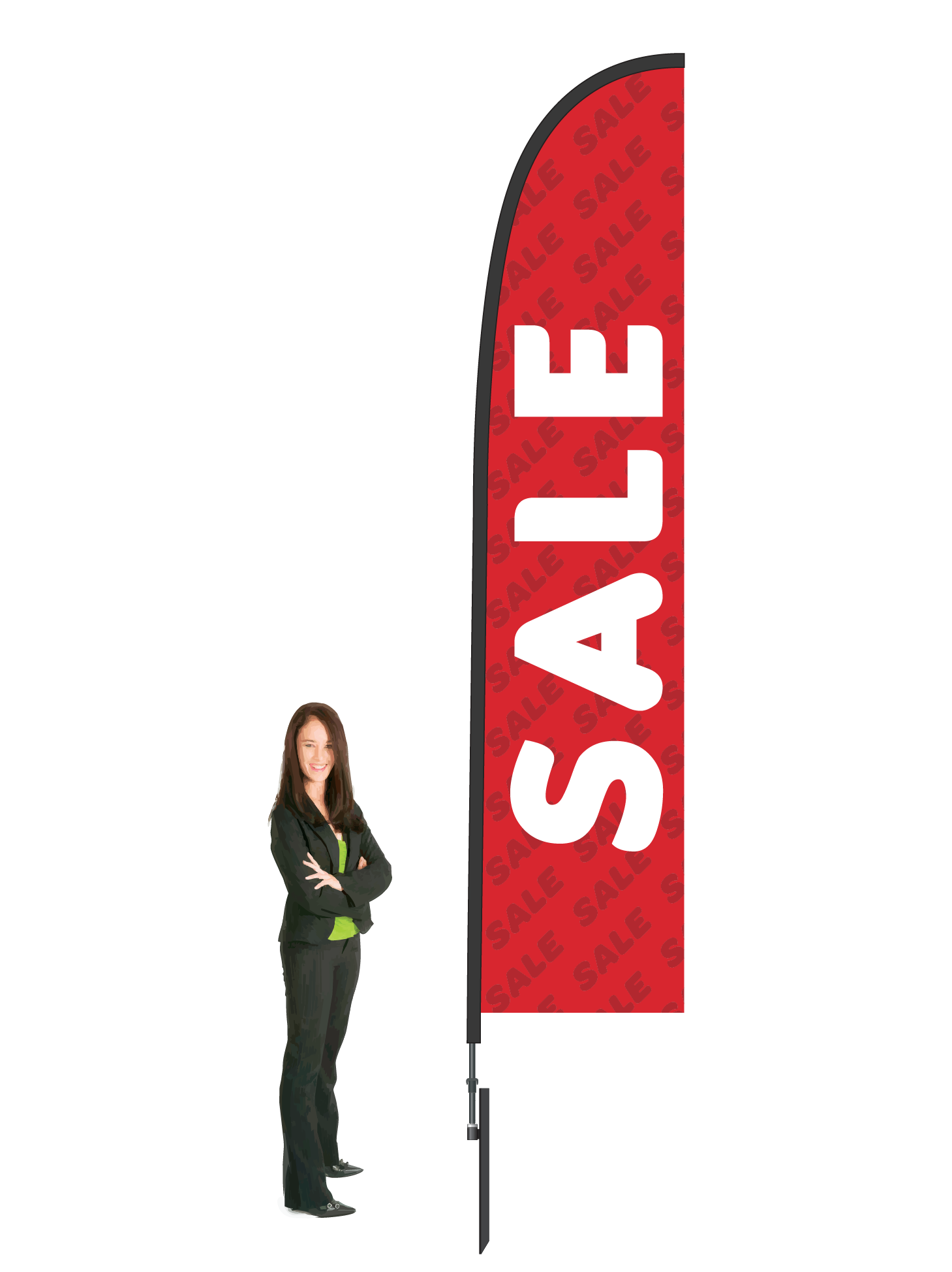 Sale Flex Flag and Display. Single-sided. Commercial Grade. 4.0m High. Made from recycled materials.