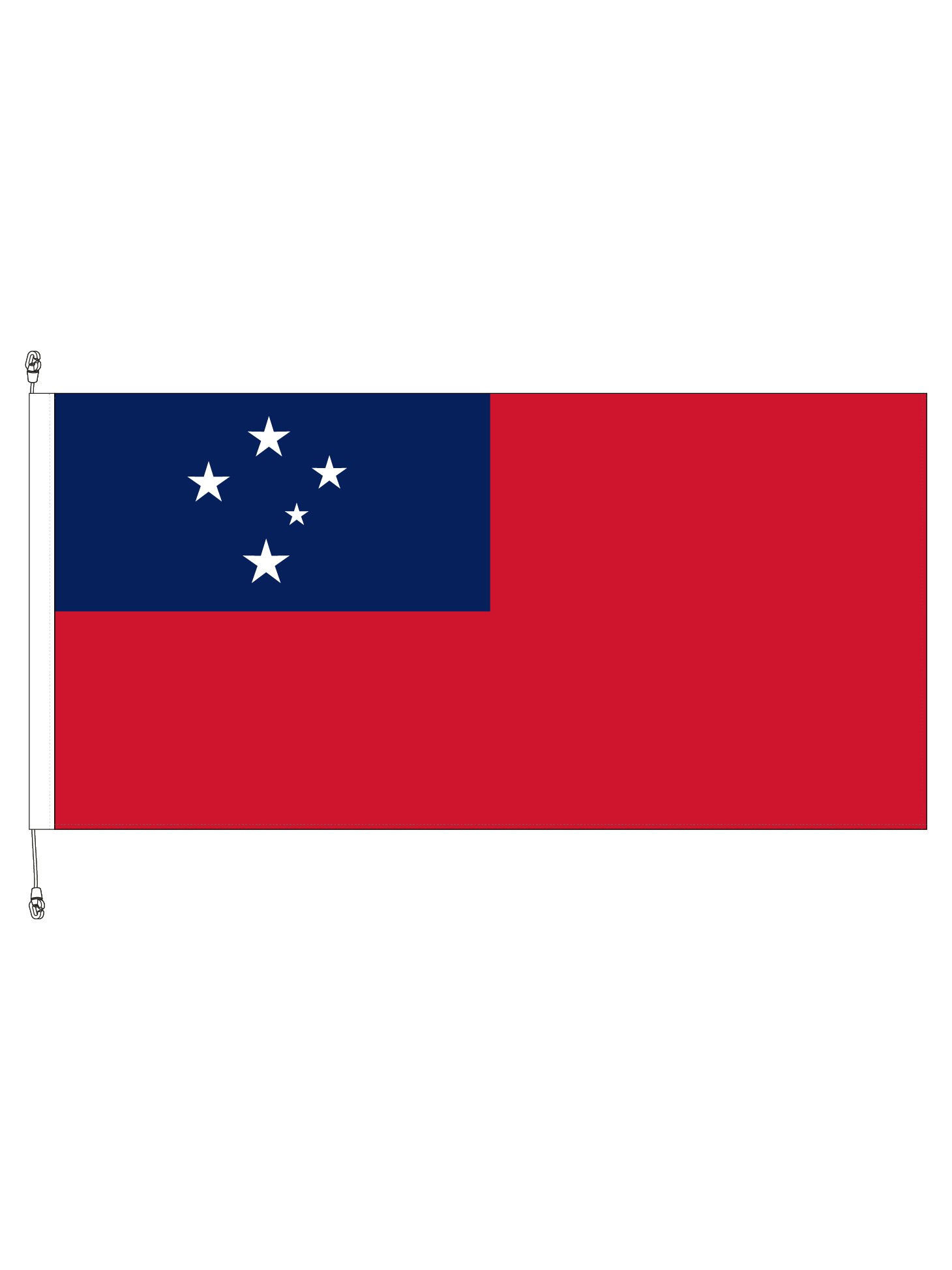 This Samoan flag is printed on 100% premium -grade polyester fabric with a heavy duty nylon header, polyester rope and Flagmakers exclusive Swivel Clips. Our most common national flag is the 1.8m x 0.9m as this fits well on a 5m flagpole.